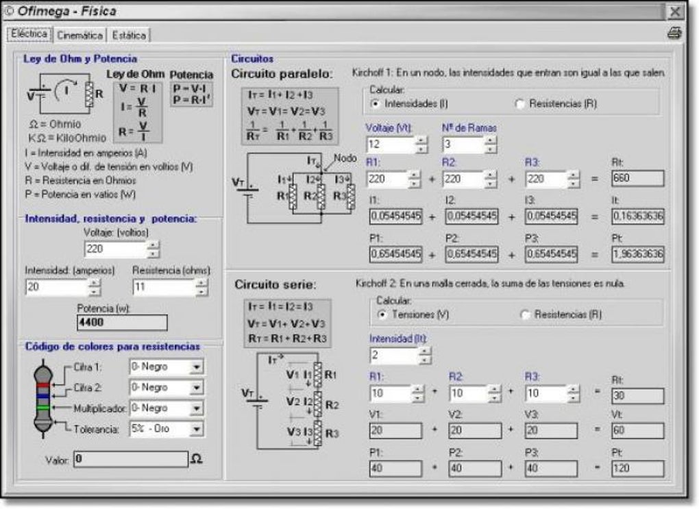 Además de la aplicación principal, Oficalc incluye módulos independientes, especialmente diseñados para realizar cálculos de física, estadística, polinomios, ecuaciones, geometría y trigonometría.